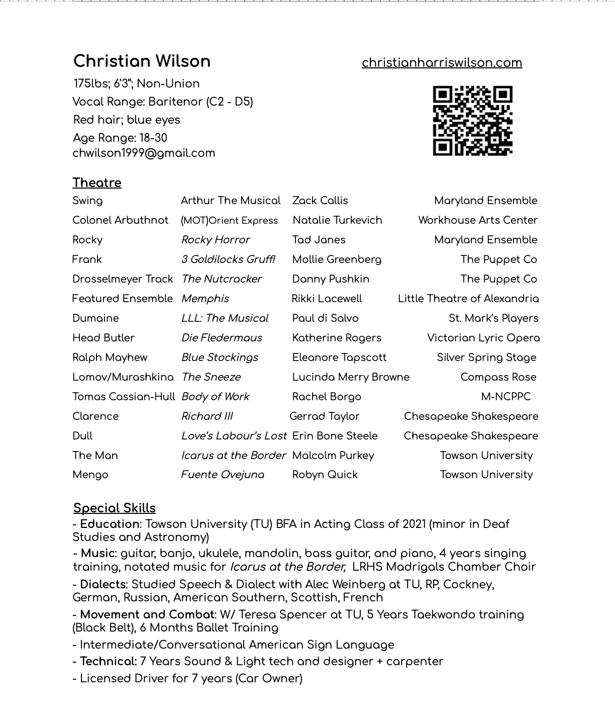 Resumes I work to push myself at all times. In tech, in music, in acting. My music director said “He’s really good.”